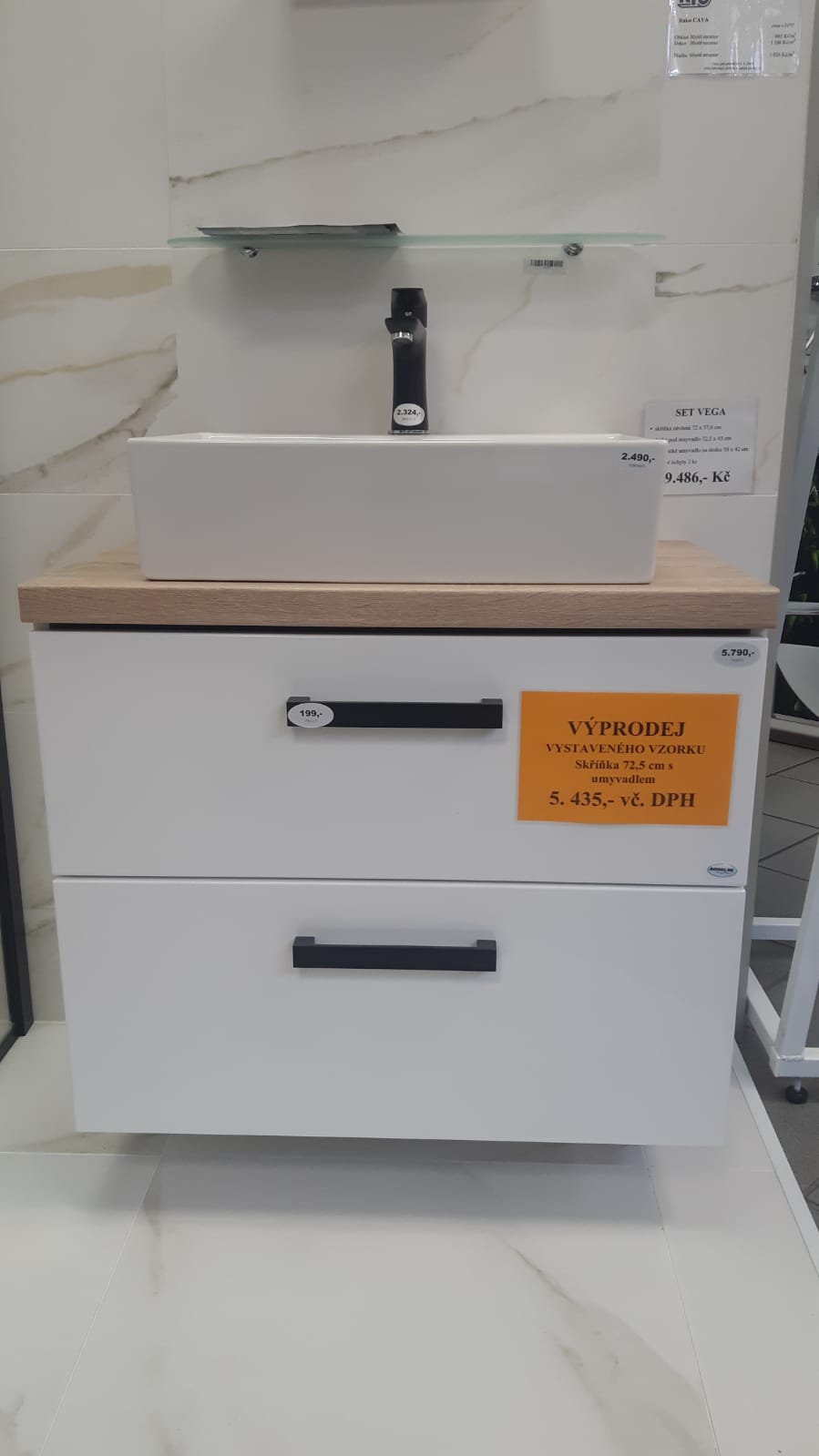 Dalším výprodejovým kouskem je koupelnová skříňka s umyvadlem. Nabízíme výstavní vzorek přímo z prodejny v Kroměříži za akční cenu.