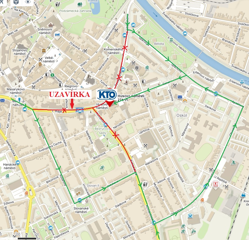 Pokud přijíždíte ze směru Kojetínská je objízdná trasa Milíčovo náměstí-Kollárova-Jiráskova-Kotojedská-Obvodová-Spáčilova-Oskol-Husovo náměstí.